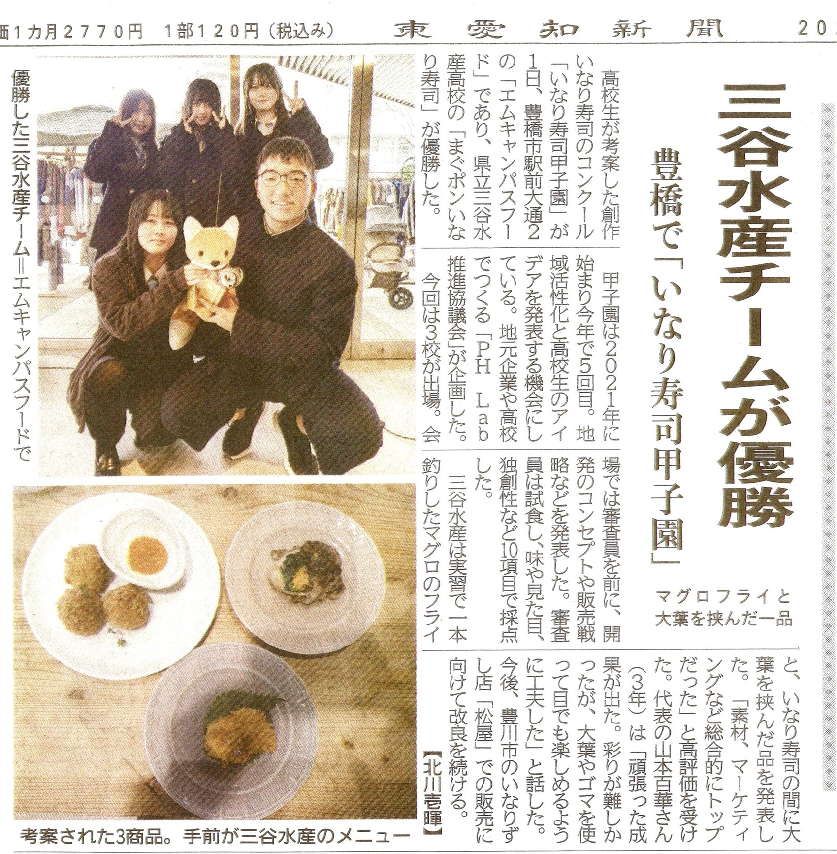 中日新聞は愛知県を中心に東海地方などで多くの部数を誇り、中日ドラゴンズの親会社でもありますので、昔からなじみの新聞社です。その新聞社から県内版で大きく取り上げていただきましたので、本当にうれしく思いました。