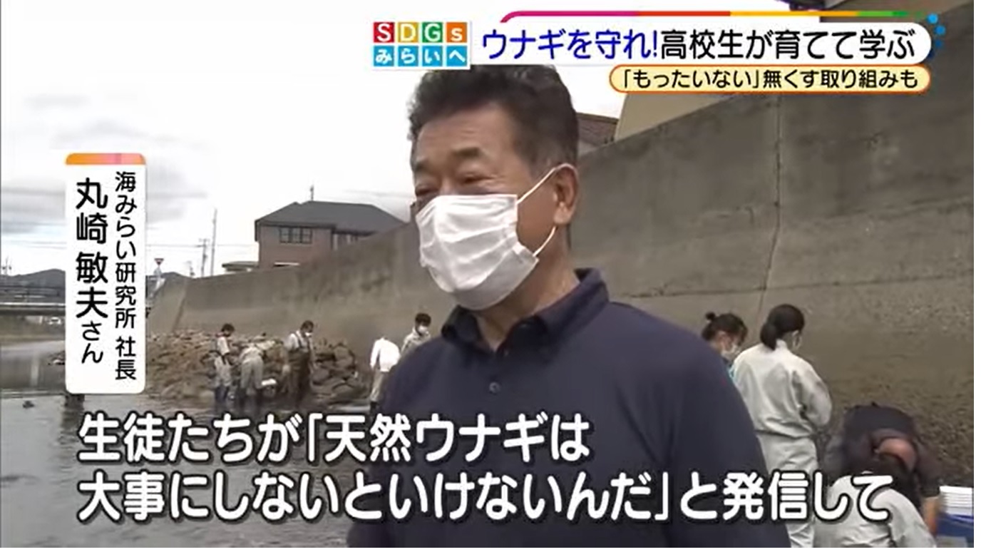 メーテレ「アップ!」でウナギのSDGsの取組が紹介されました 9月22日(水)メーテレの「アップ!」で、弊社の二ホンウナギのSDGsの取組について紹介されました。 連携協定を結んでいる愛知県立三谷水産高校と、共同で取り組んでいるウナギの完全養殖の研究や、石倉かごのモニタリング調査など、生徒さんたちの活動を中心に紹介していただきました。「アップ!」で紹介された映像は現在Webニュースで閲覧できます。https://www.nagoyatv.com/news/?id=009008