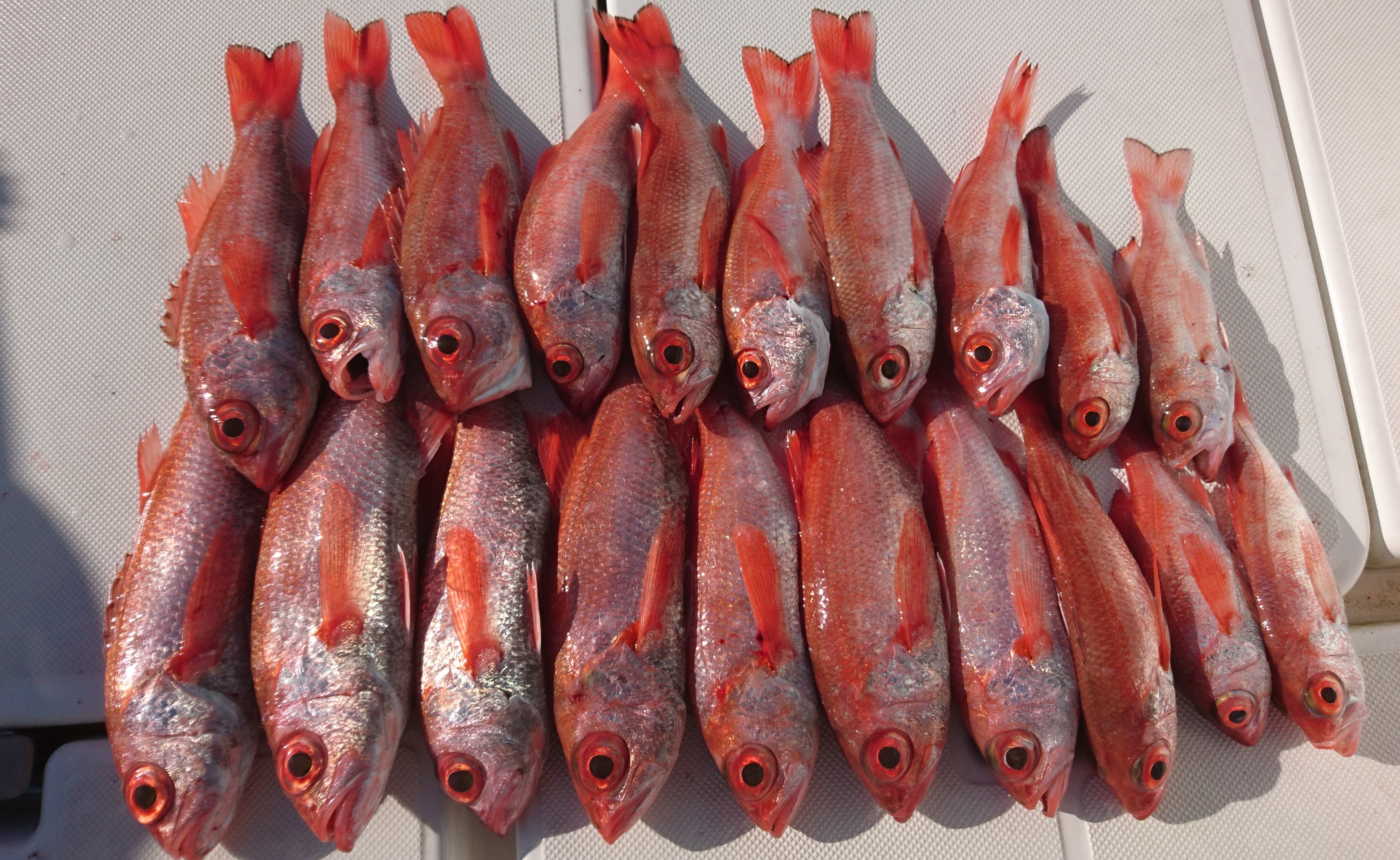 浜名湖のスズキマリーナにボートを保管し、凪の良い日は遠州灘に出漁して、アカムツやクロムツなどの深海魚や、アマダイやヒラメなど美味しい魚を主体に釣果を挙げています。